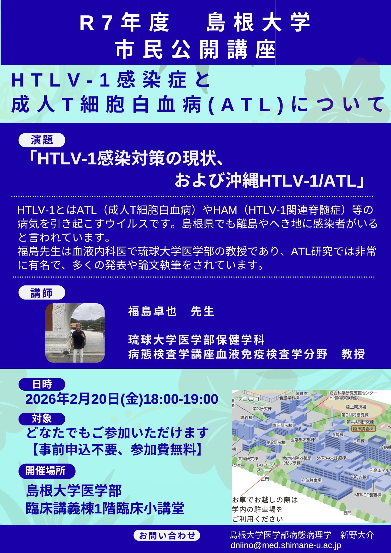 >R7年度市民公開講座「HTLV-1感染症と成人T細胞白血病(ATL)について」