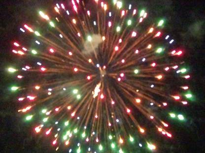 近くの小さな祭りの小さな花火大会です。打ち上げ場所から近い所で見えるので