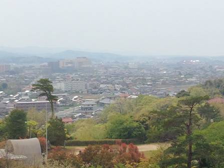 現在の島根大学出雲キャンパス及び病院です。もやってるのは、PM2.5を含む黄砂のためです。澄んでいれば、向こうに三瓶山が見えるはずです。昔(学生時代)は、出雲市内に高い建物はなく、屋上(8階)でお弁当を食べていたりしていましたが、現在は鍵がかかっています。